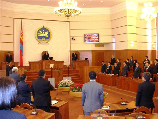 54 von 76 Abgeordneten waren anwesend, zum ersten Mal nahm S. Erdene (DP) seinen