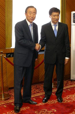 S. Batbold mit UN-Generalsekretär Ban Ki Moon. Juli 2009