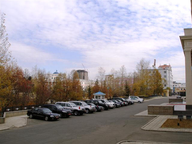 Diplomatenfahrzeuge vor dem Nordeingang zum Regierungspalast