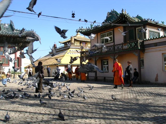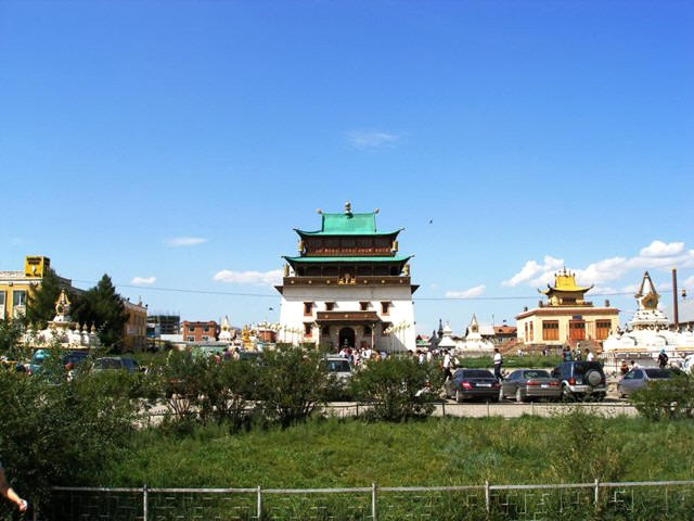 Bei ihrem Besuch des Gandanklosters und des Betub-Klosters in Ulaanbaatar