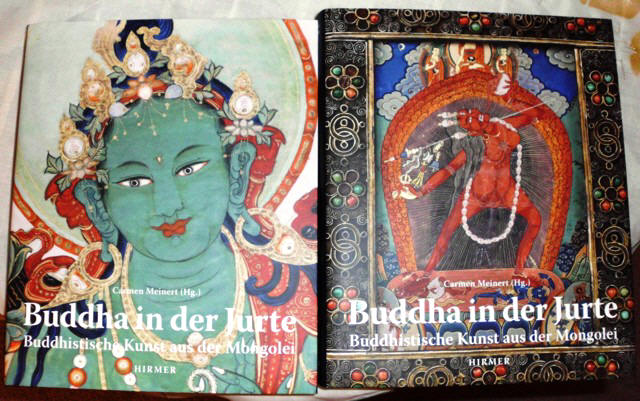 Prachtbände mit Abbildungen buddhistischer Kunstobjekte aus der Mongolei.