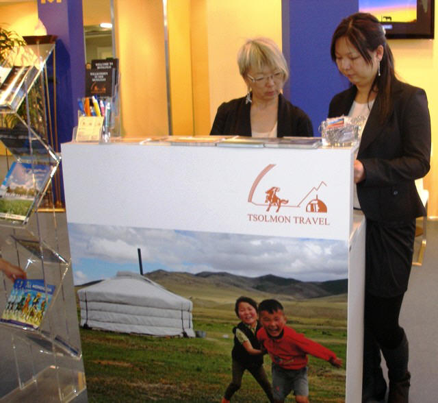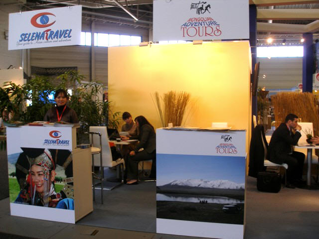 In der Halle 26 stellten die Reiseunternehmen „Juulchin", „Great Genghis Tours & Expeditions", „Mongolian Adventure Tours", „Nature Tours", Tsolmon Travel", „Selena Travel" und „Samar Magic Tours" ihre Angebote vor.