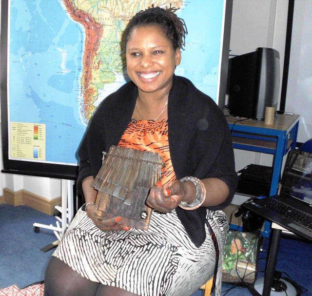 sie sang und spielte dazu auf der Mbira (Lamellophon) und bezog in den Gesang