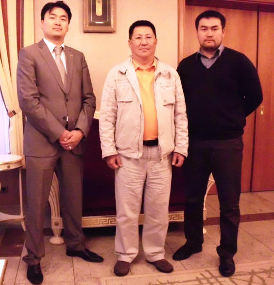 In der mongolischen Botschaft in Berlin. V.l. Ch. Batbileg, M. Tumenjargal, Kh.