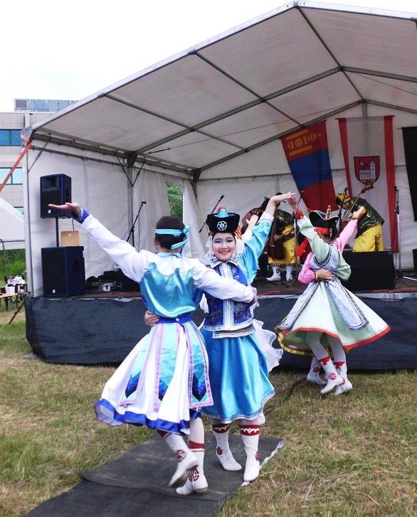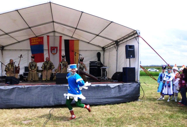 Genau wie die Musiker und Musikerinnen von „Khukh Mongol" (Blaue Mongolei) wurden sie von den Besuchern begeistert gefeiert, ehe alle zum traditionellen mongolischen Ringkampf zogen. Auch in diesem Jahr hatten sich wieder mutige Nichtmongolen entschlossen, den Kampf aufzunehmen und wie in jedem Jahr landeten sie vorzeitig auf dem Rasen, konnten sich aber des anerkennenden Beifalls des fachkundigen Publikums sicher sein.
