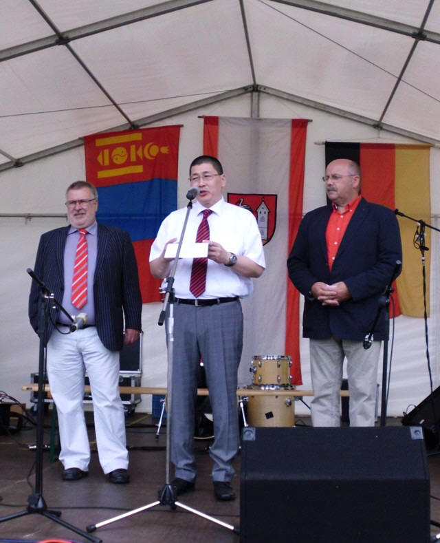 Rainer Bretschneider, Staatssekretär im Ministerium für Infrastruktur und Landwirtschaft des Landes Brandenburg, Ortsvorsteher Michael Smolinski und Botschaftsrat Tsolmony Bolor eröffneten das Fest mit allen guten Wünschen für ein paar entspannte Stunden.