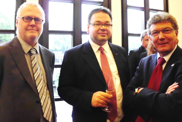 V.l. Dr. E. Pohl, F. Voßen, Geschäftsführer DeMoGe, Dr. U. Haase, Bürgermeister