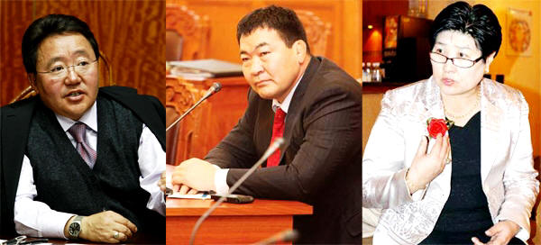 Präsidentschaftskandidaten 2013. V.l. Ts. Elbegdorj, B. Bat-Erdene, N. Udval.