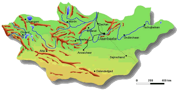 Gegen 10 Uhr kommt der Bus und in ihm sitzen schon zwei Männer und ein Mädchen. Dem Mädchen ist schlecht und so müssen wir ab und zu anhalten. Es geht in Richtung Nordosten durch die Stadt Bagan Nuur. Dort wird Steinkohle abgebaut, welche dann per Bahn in die Hauptstadt gebracht wird.