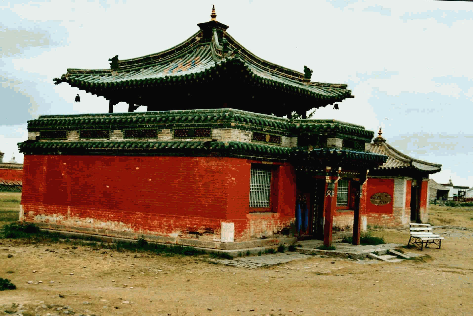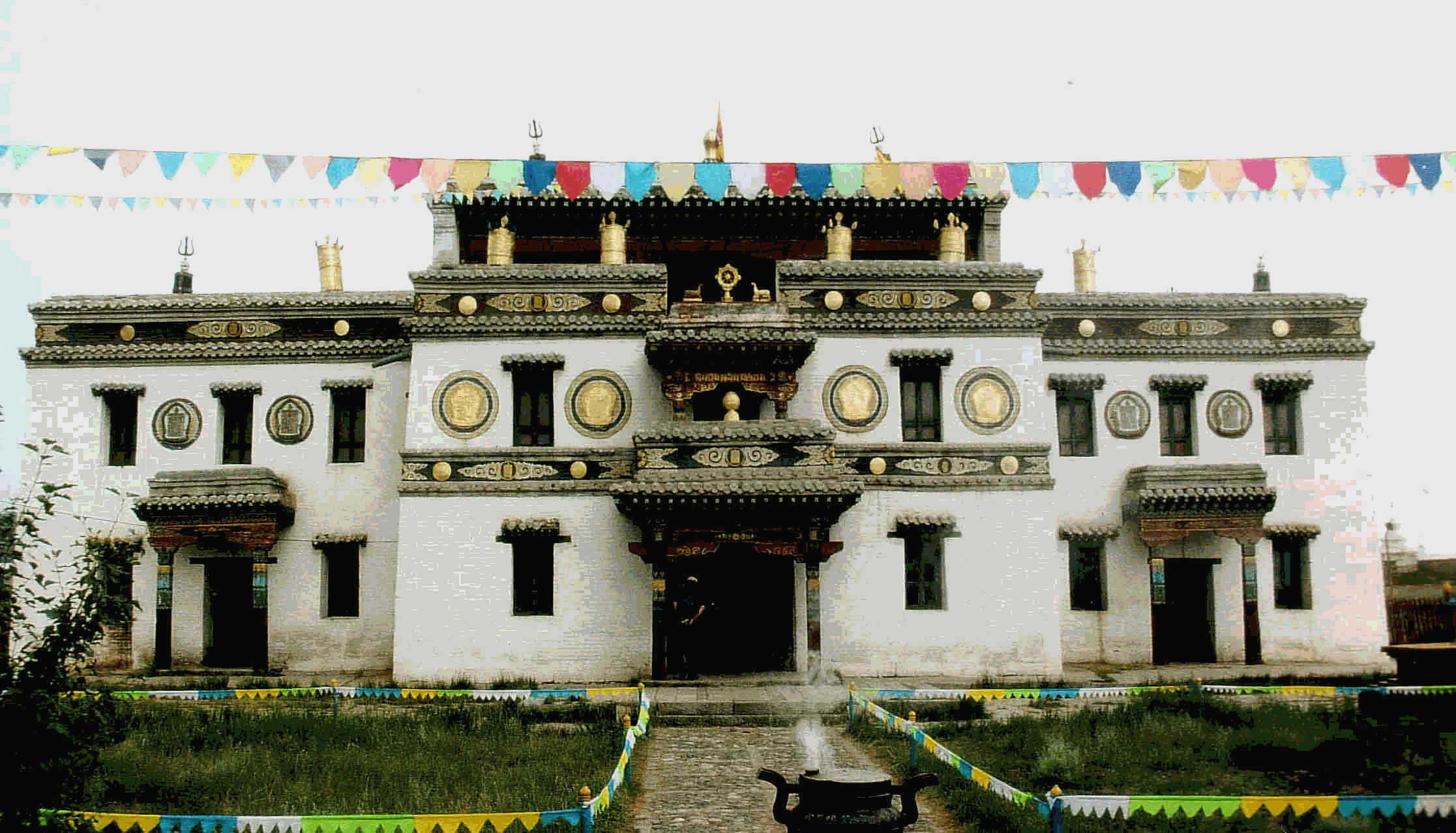 So gegen 10 Uhr sind wir bei der Klosteranlage. Ninje hält Ausschau nach einer Führerin, die uns alles genau erklären kann. Wir werden durch die vielen Tempel unterschiedlichster Architektur und Bauzeit geführt. Sie sind alle sehr farbenfroh und prächtig ausgestattet mit Buddastatuen, Butterfiguren, Gebetsbänder etc. Doch wir sind schon reisemüde und können den Erklärungen nur am Anfang genau folgen. Wir laufen noch zu der jüngsten Ausgrabungsstätte. Dort feilschen wir mit den HändlerInnen und ich kaufe mir „Sotres" für Kinder.