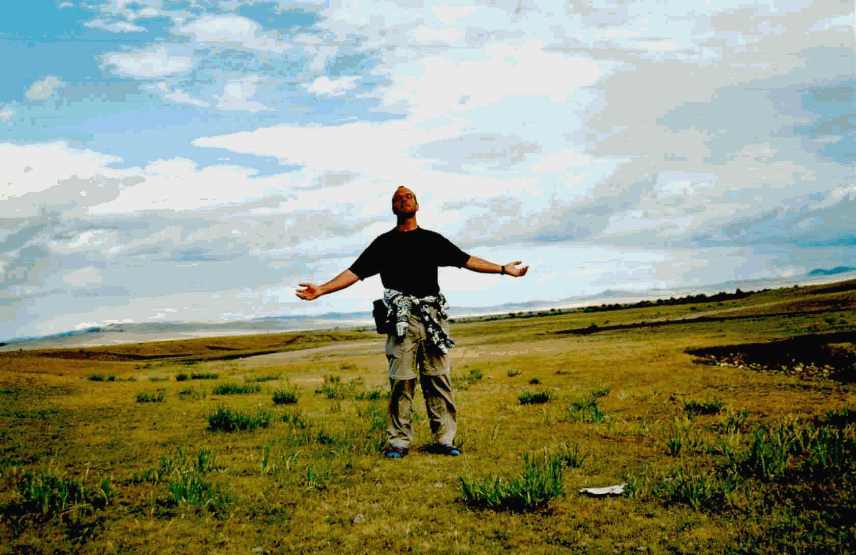 Gegen 8 Uhr sind wir auf dem Flughafen. Wir wollen nach Oelgi fliegen, in den Nordwesten. Alles verzögert sich etwas, gegen 9 Uhr geht`s los. In der alten Tupolewmaschine ist es eng und alle Plätze sind belegt. Ca. 11 Uhr – Zwischenlandung in Tosontsengel, die Maschine wird vollgetankt. Mir ist etwas mulmig. Auf dem Rollfeld Pause für alle Passagiere. Ich lege mich etwas hin und bewundere die vielen Grashüpfer.