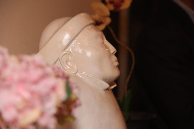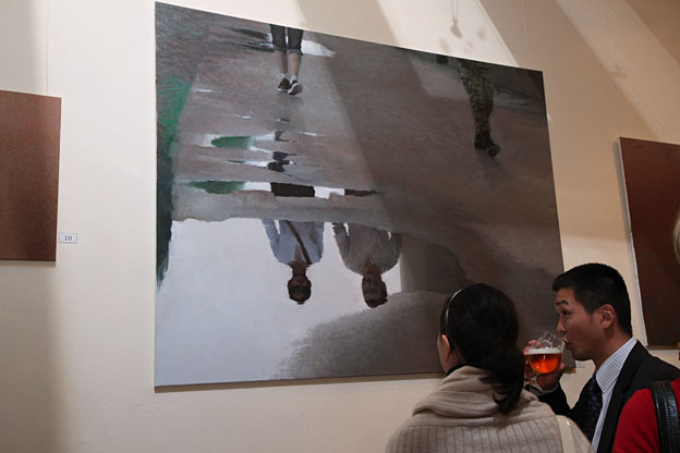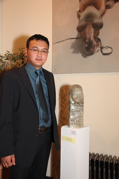 Der 1979 geborene Künstler zeigt sowohl Gemälde als auch Skulpturen. Er ist einem Teil des Publikums an jenem Abend kein Unbekannter, hatte er doch schon Anfang des Jahres in einer Gemeinschaftsausstellung mongolischer Kunstschaffender in den Berliner Treptowers ausgestellt.