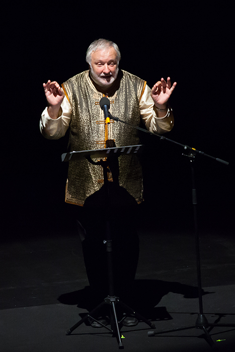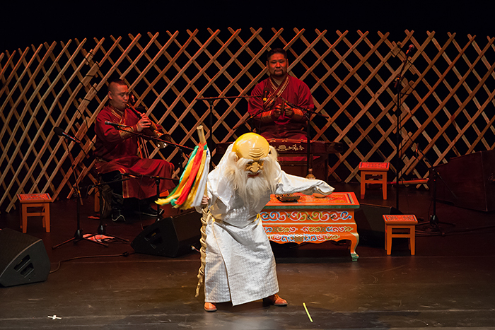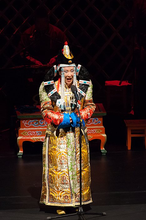 Das Programm moderierte Prof. Bernhard Wulff, Kulturbotschafter der Mongolei und Gründer des Musikfestivals „Roaring Hooves“, das jährlich in der Gobi stattfindet. Ihm gelang es, unterhaltsam die Besonderheiten der mongolischen Musizierformen und Gesangstechniken vorzustellen. Sängerin Samdandamba Badamkhorol präsentierte Urtiin Du, den „Langen Gesang“ bei dem nur wenige Worte ausgedehnt transportiert werden. Die männlichen Sänger begeisterten das Publikum mit Chöömij (Obertongesang). Zu den Erläuterungen von Prof. Bernhard Wulff zeigten sie Alltagsgesten einer Begrüßungszeremonie auf dem Lande mit dem Austausch von Schnupftabakdosen. Wulff wies auf die „Zärtlichkeit“ mongolischer Alltagsgesten hin und interpretierte sie als Vorbild für ein friedliches Weltkonzept.