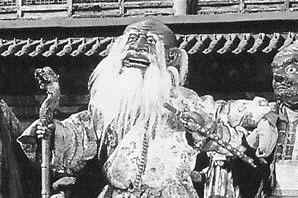 angesehen. Attribute wie weisse Kleidung und drachenbekrönter Stab erinnern an das