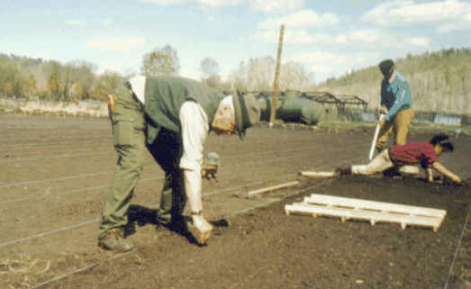 Forstbaumschule Bugant, Seniorexperte Siegfried Schnell bei der Aussat von Kiefern