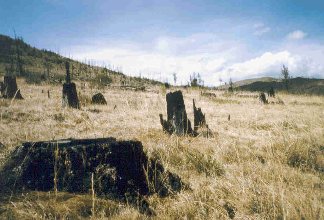 Das Ökosystem des „mongolischen Taigawaldes" und die Steppe sind an Feuer angepaßt. Natürliche Feuer entstehen nur im Sommer durch Blitzschlag mit der Entzündung der dicken und trockenen Nadelstreu unter den Bäumen in der Regenzeit, dann laufen sie sich verhältnismäßig schnell im frischen Grün tot, falls nicht im Wald durch viel stehendes und liegendes Totholz ein Vollfeuer sich entwickelt. Da es infolge des kontinentalen Klimas wenig Kleinstlebewesen wie Regenwürmer, Asseln, Pilze und Mikroben gibt, erfolgt durch das Feuer die Miniralisierung der Nadelstreu. Doch was 1996 passiert war, ist für europäische Maßstäbe unvorstellbar. Es brannte auf 10,7 Mill. Hektar. Auf Deutschland übertragen wäre das die Fläche der Bundesländer: Schleswig-Holstein, Hamburg, Bremen, Niedersachsen, Nordrhein-Westfalen und die Hälfte von Rheinland-Pfalz. 25 Menschen kamen ums Leben und eine nicht mehr feststellbare Menge Vieh. Der gesamte ökologische Schaden ist nicht zu beziffern.